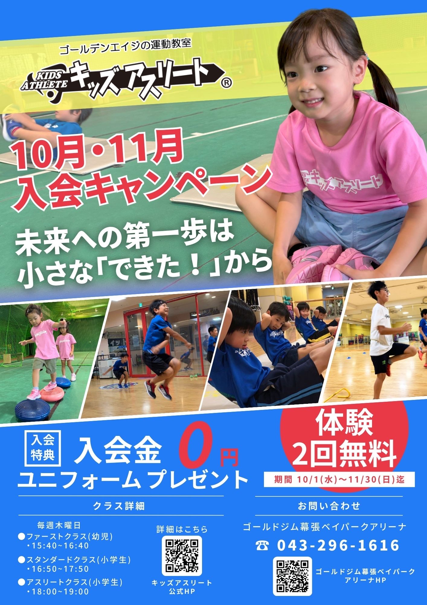 ゴールドジム幕張ベイパークアリーナクラスでは、10・11月にスクール入会キャンペーンを実施中です!
